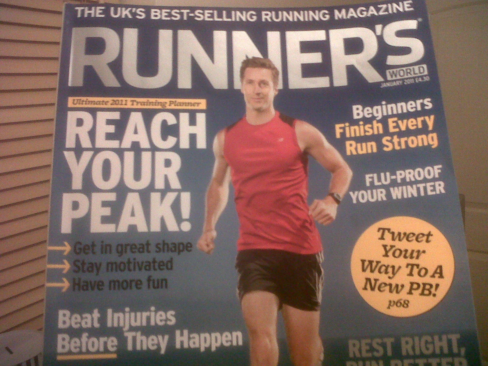 Today’s picture is the Runner’s World Magazine. The new year brings renewed enthusiasm to get back the speed and set some PBs this year. I have already made a bigger effort on the training front – attending club sessions and getting out on the road a bit more.