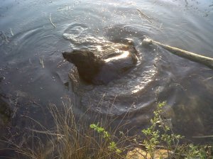 - During the morning walk he went running through the farmer’s field and got covered in this sticky ‘stuff’, so a visit to the pond for a dip was needed.