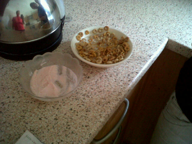 Project365 #207 – Nutritious Breakfast? July 27, 2011July 27, 2011 ~ Phil Lengthorn ~ Leave a comment Today’s picture (oops – day late) is Amy’s nutritious breakfast…Cherrios with a side order of Strawberry Angel Delight.