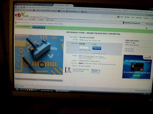 Project365 #262 – Ebay saves the day! September 19, 2011September 23, 2011 ~ Phil Lengthorn ~ Leave a comment Somehow Helen managed to ‘lose’ the boot button from off the car! New one ordered through Ebay – £14.99 plus p&p.