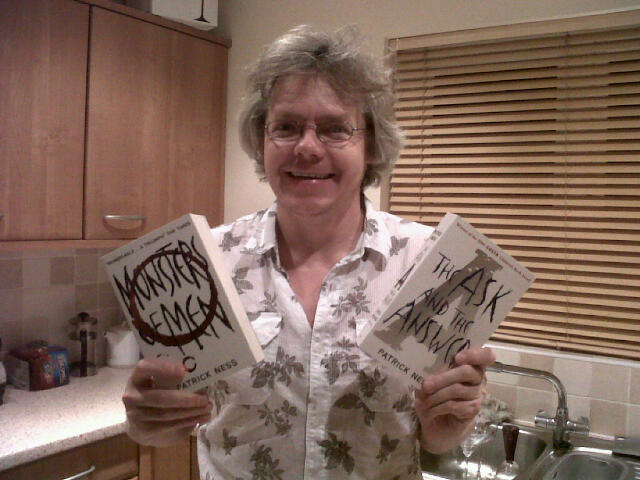 Christmas Day: proudly displaying new Christmas shirt and book two and three in the Chaos Walking Trilogy…..