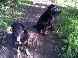 Late this afternoon, was a nice gentle run around Bourne Woods with the dog, or should I say dogs. We are currently looking after the mother-in-law’s dog while she recovers from a heart bypass operation. Her dog is the one on the right, the divvy looking one with the gormless expression, a lump of a dog, incredibly clumsy with some kind of dog psychological disorder.