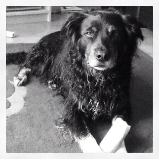 Day 4 of Juneathon was a dog jog round the woods. And taking the lead from Mark here’s a picture of Billy Boy on our return home enjoying his bone: