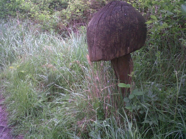 So in an attempt to avoid the stress of meeting anyone else we headed for the tracks through the woods. All was going reasonably well, I had managed to avoid most of the mud and still had dry feet. We had passed some of the statues that were placed around, including some oversized mushrooms.
