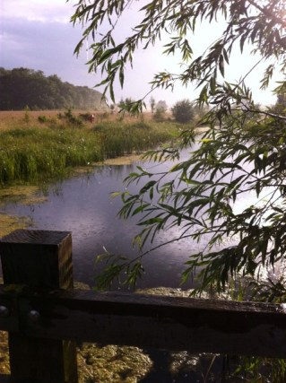 By the time I had traversed the field and made it back to the ponds and the path that would take me back into town the sun had come out, although it was still raining….