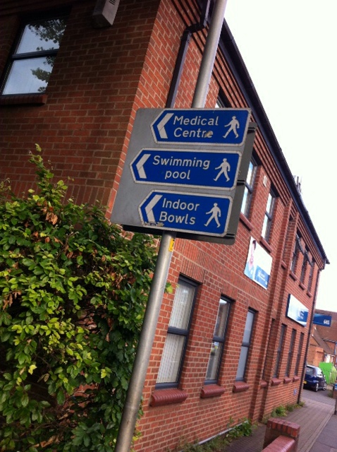 The first difficult part of the night was actually finding the pool. After doing a couple of laps of the one-way system the only sign we found pointing us to the pool was this one…