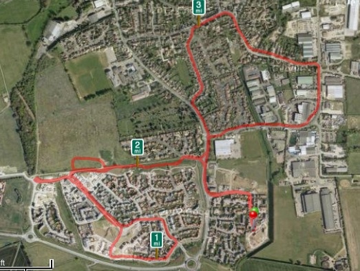 So another late run in the dark. Although rather than the normal 4ish miles I've been doing lately I dropped the mileage a bit and upper the pace. Ended up doing 3.66 miles in 28 minutes, worked out at an average pace of 7.42 min/mile. I've been using RunKeeper to log the miles this month rather than using my Garmin, and when I got home I noticed I had quite unintentionally created the first runart of the month. Can you guess what it is?