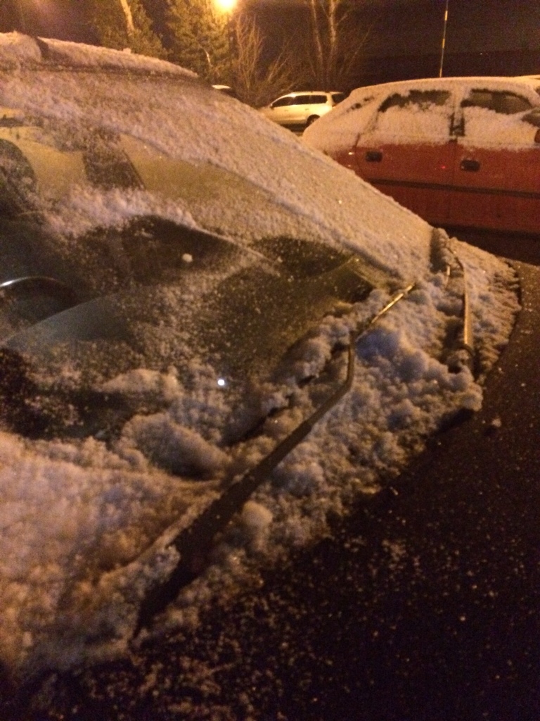 It was a bitterly cold night when I finally trudged out of school, and after a bit of a snow shower this afternoon I was faced with the prospect of scraping the car of ice to get home.