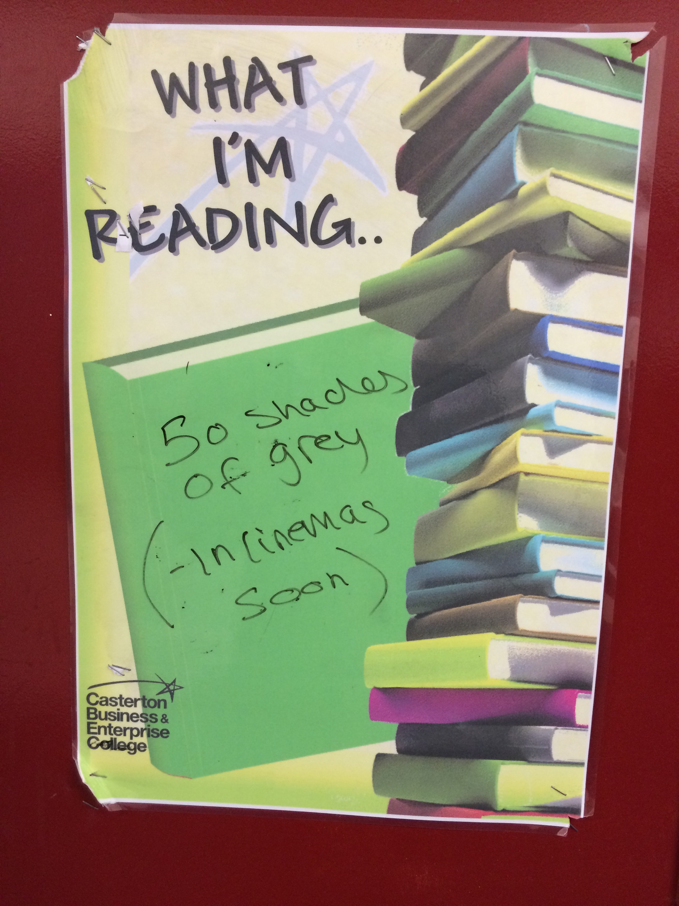 At our school, teachers have ‘What I’m reading’ displayed on their classroom door – it encourages students into discussions about books, maybe even makes them pick up one now and again.