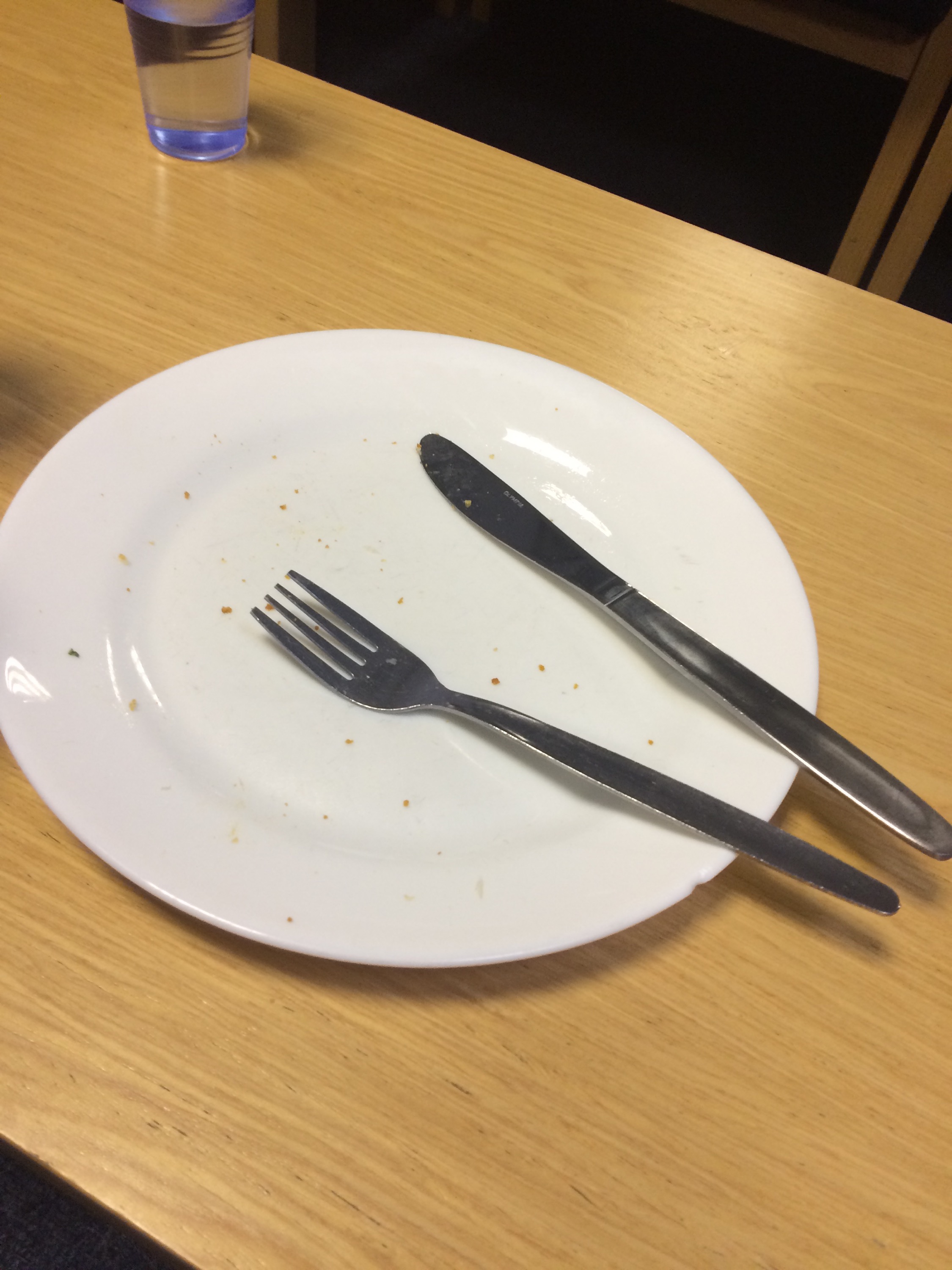 Although I ate them so fast that a picture was out of the question. Instead, for your entertainment…an empty plate that once contained fish fingers, chips and peas…
