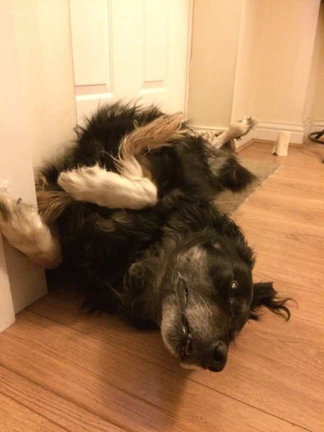 To celebrate Easter Monday I give you my lazy dog who accompanied me on a 4 mile run this afternoon. He’s getting a bit old now and he’s not quite as fit as he used to be….