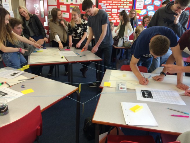 So today’s picture had to be some fantastic Y11s working particularly hard – in fact the picture shows Team Amazing and Team Awesome in the midst of the battle. Please note the excessive pointing that seems to be taking place….