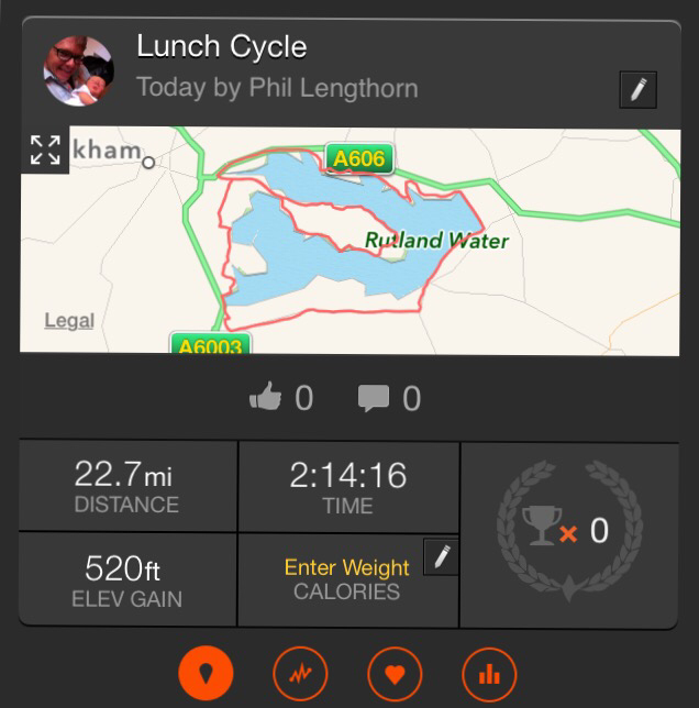 It was pretty hard work, I’ve done a bit of running round the reservoir, but never remembered it being quite as hilly as it was. But pretty happy, it’s only 22 miles, but baby steps and all that.