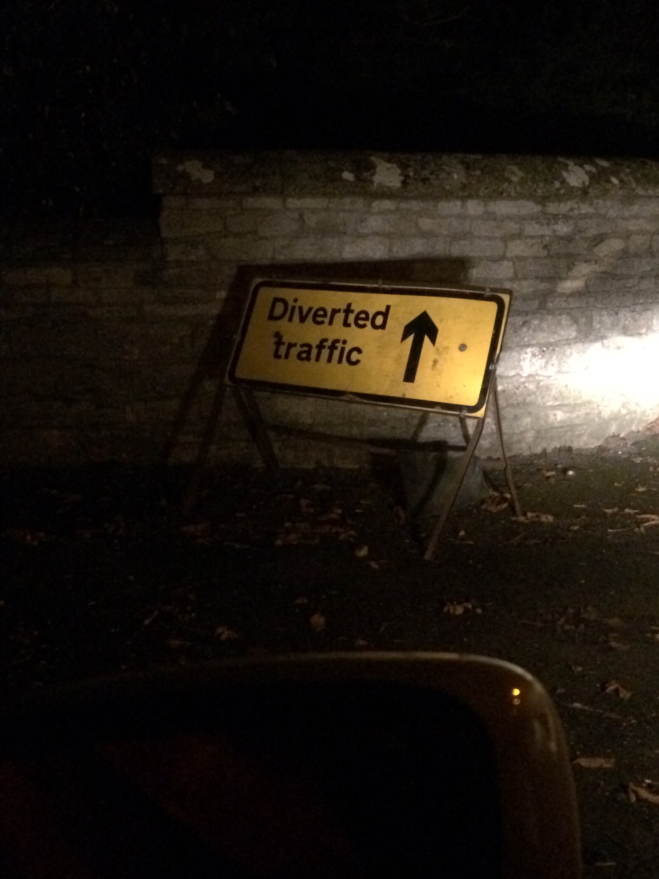 Project365 #288 October 15, 2015 ~ Phil Lengthorn ~ Leave a comment Thursday night is the new Friday night. So it was off to Kath & Terry’s for dinner. The return journey home was interesting: a MASSIVE diversion. Late night.