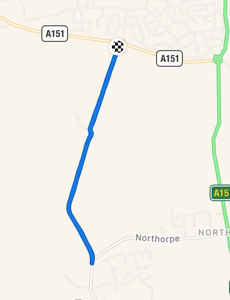 Tonight’s run was a very gentle and very simple 2 miles. It involved walking the dog to a point just on the outskirts of town. Running 1 mile, turning round and running back. The map of the route looked like this.