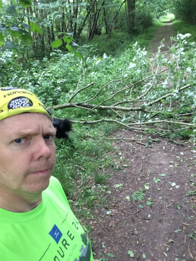 #juneathon Day 7 June 7, 2017 ~ Phil Lengthorn ~ Leave a comment One week down. 7 runs completed. Nice. To celebrate….a photo blog. A gentle plod round the woods avoiding various obstacles on the way, including mud, fallen trees and endless paths. 3.1 miles done. Total Juneathon mileage = 24.3