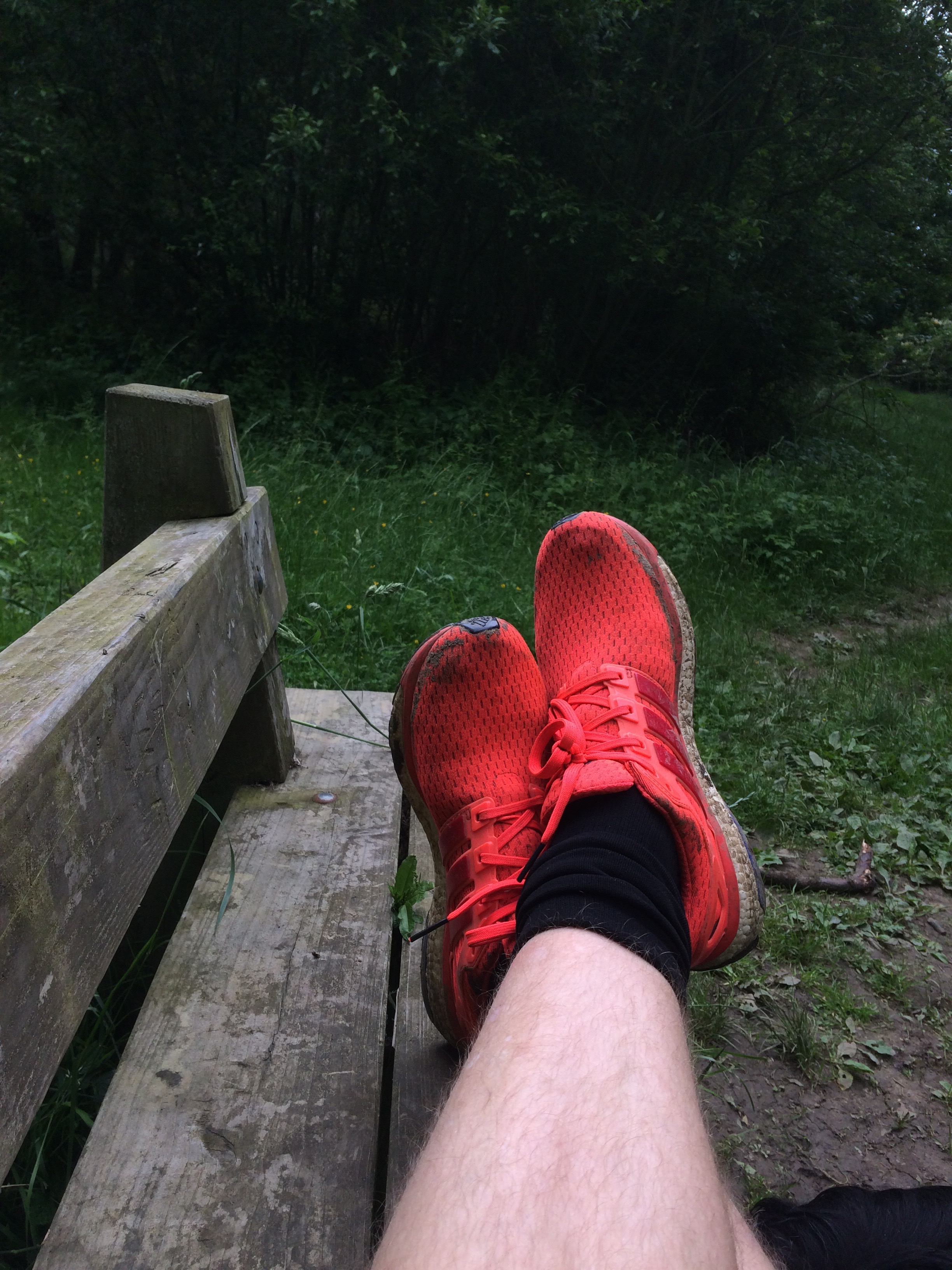 Today felt a lot better than yesterday; 3.5 miles at the woods with the dog. I even managed to run up a few hills tonight.