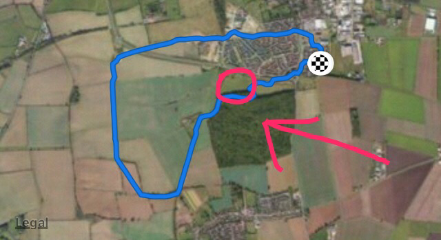 I completed a sort of ‘lap’ of my end of town. It takes in a few busy roads, a partially completed new estate, some trails, across fields and through woods.