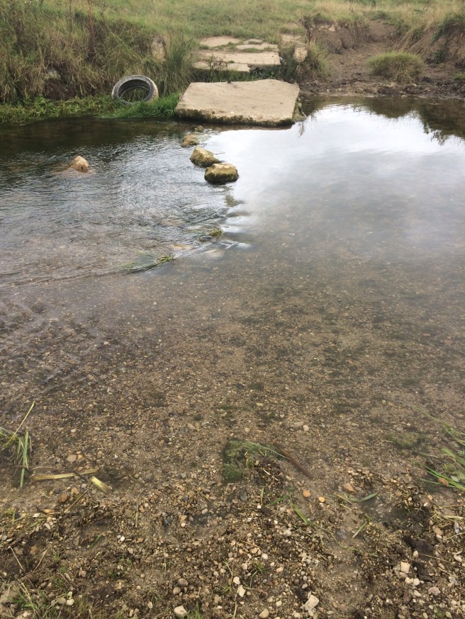 Well, I was never going to face the cows alone. Never. Cows are evil. Turn back? Face the barbed wire again? Nope. Which left the prospect of crossing the river again. Only this time there was no obvious crossing point. So I just went for it. Negotiated the bank down, the knee high rushing river and up the opposite bank. I was safe once more.