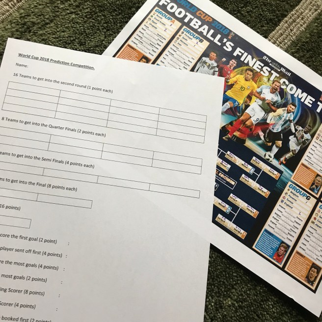 Although the most important reason was to get in and sort out my predictions for Mrs Marples’ amazing World Cup football competition: