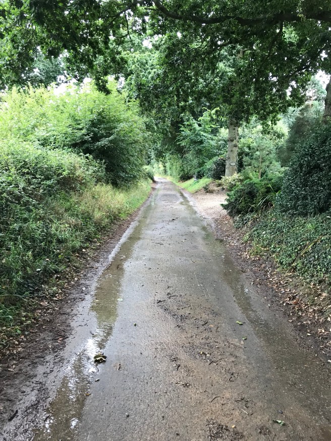 Made it just out of Cromer before it started drizzling with rain, this soon changed to light rain, and at time heavy rain. I was following National Cycle Route 30 – so was constantly on the hunt for the blue ’30’ signs. At one stage, in the rain, I got to junction and there wasn’t any blue signs. Left was ‘Hungry Hill’, right was a lovely looking tree lined lane. My sense of direction suggested left, but ‘Hungry Hill’ did not sound inviting. Headed right. About half a mile down the road I spotted a ’30’. Nice. Note to self: never rely on my sense of direction.