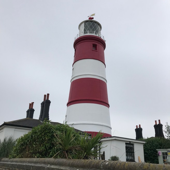 I took a bit of a detour to Happisburgh to see the lighthouse and the site of a mass grave of 119 seamen of HMS Invincible, one of Lord Nelson’s ships, which went down in 1801.