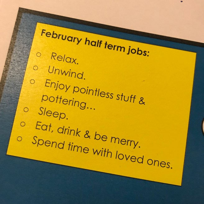 After what has been an exhausting term, it was good to be given some half term jobs from my HoD. Very much looking forward to completing them.
