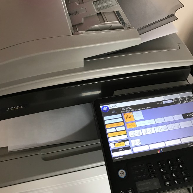 - Photocopier one ran out of paper mid copy – none easily available – had to go fetch some.