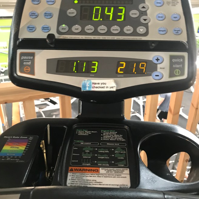 After yesterday’s seemingly harmless activity of running up and down the stairs, which resulted in a tight calf, a trip to the gym for a bit of a gentle bike ride was on the cards.