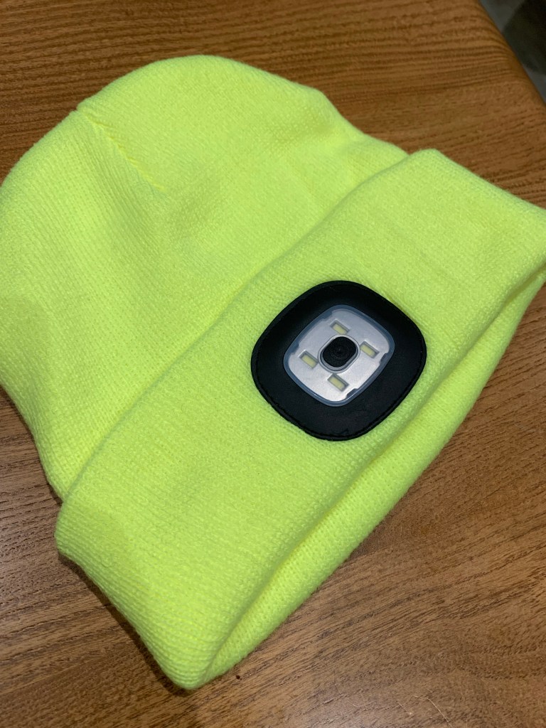Technically this was a genius little buy. Firstly, it’s winter and very cold out, always need a hat. Secondly, built in light, negates the need to take anything else. Boom.