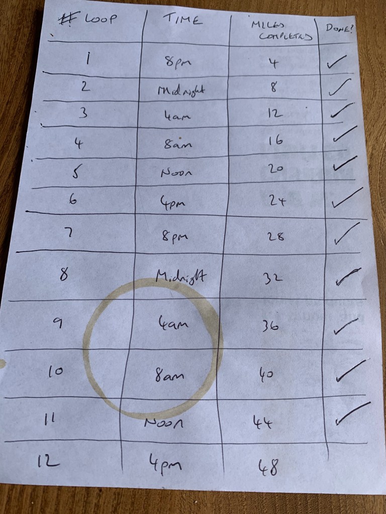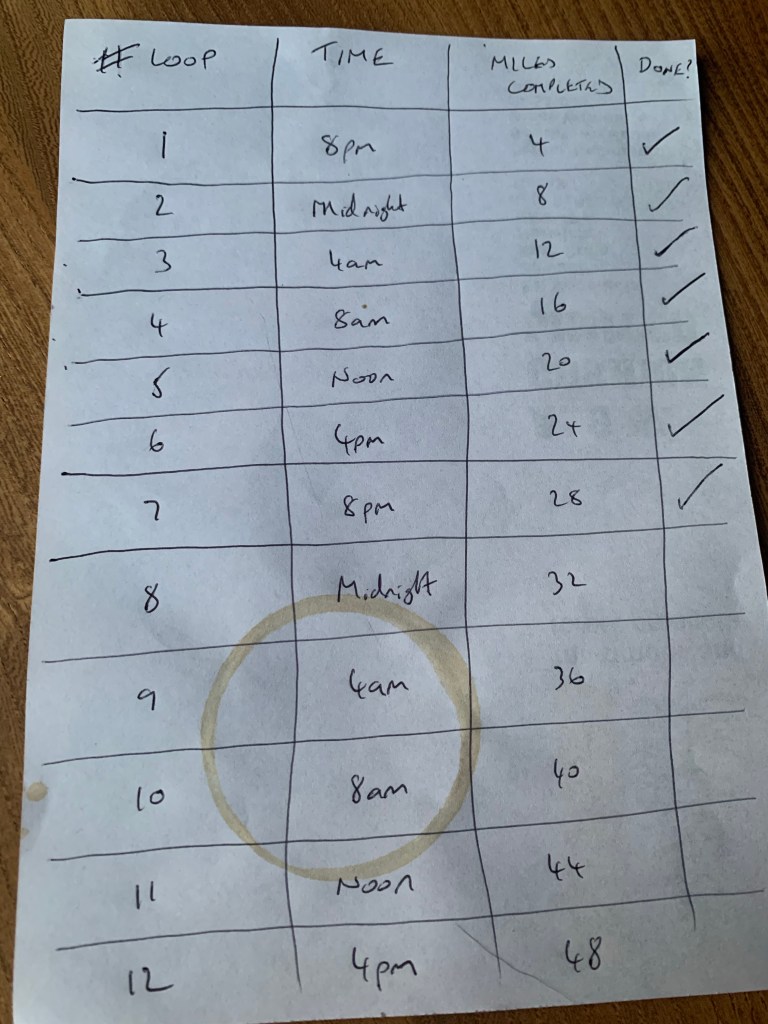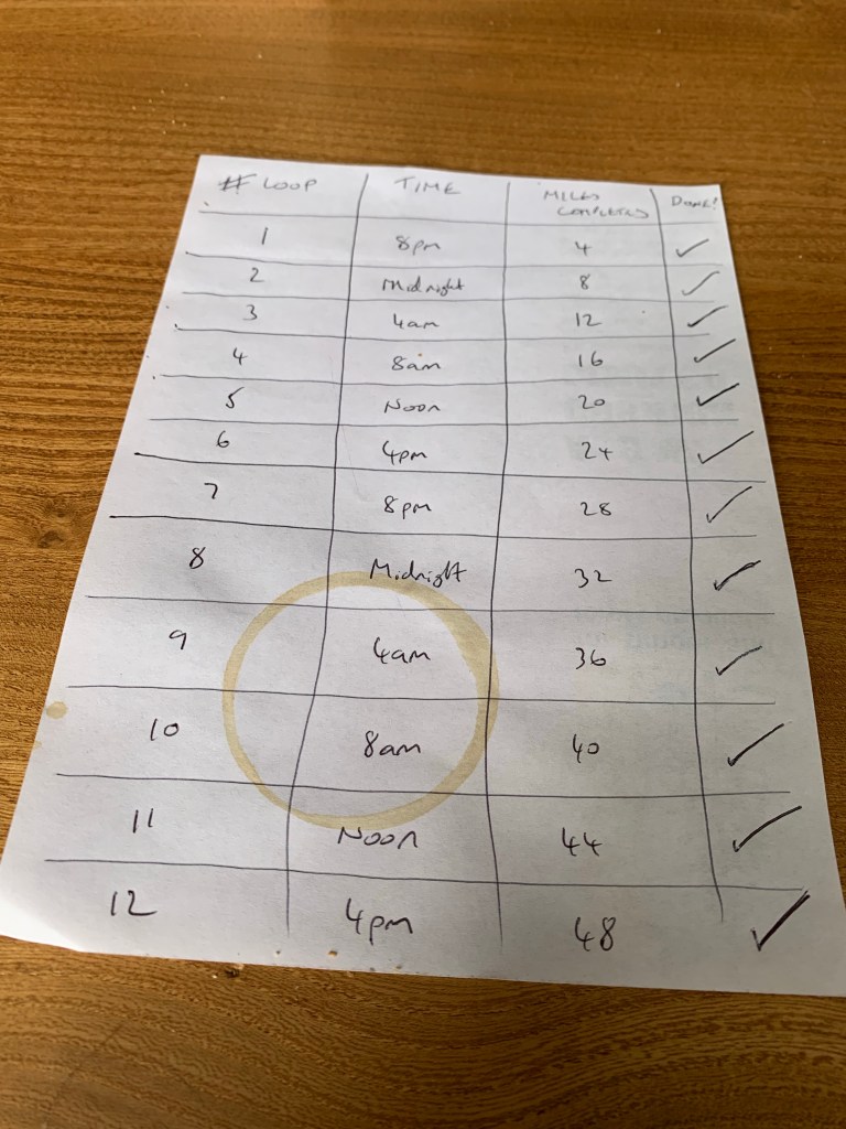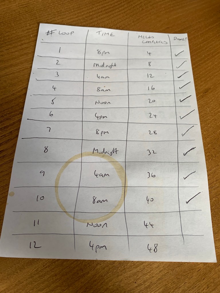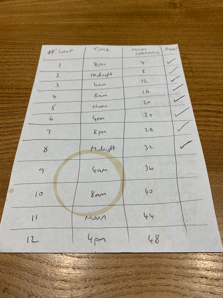 Not particularly looking forward to the midnight loop – it is pitch black then and following that little ring of light from the headtorch can send you slightly mad.