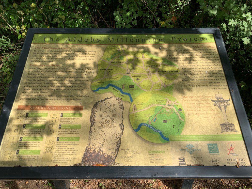 In 1999 Aldeby Parish Council planned and carried out the ‘Pathways in Stone’. This is a series of big stones strategically placed and celebrates Aldeby through the Millennia and echoes the tradition of parish boundary markers.