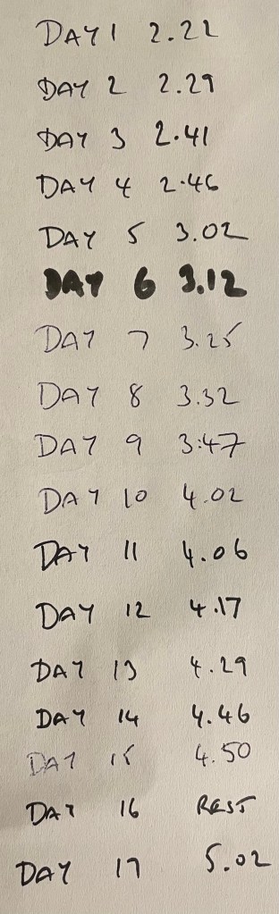 It has taken 17 days but the 5min plank has finally been surpassed. It’s amazing how by simply repeating the same exercise you can get better and stronger. I took the decision yesterday to give myself the day off – I felt like it was needed.