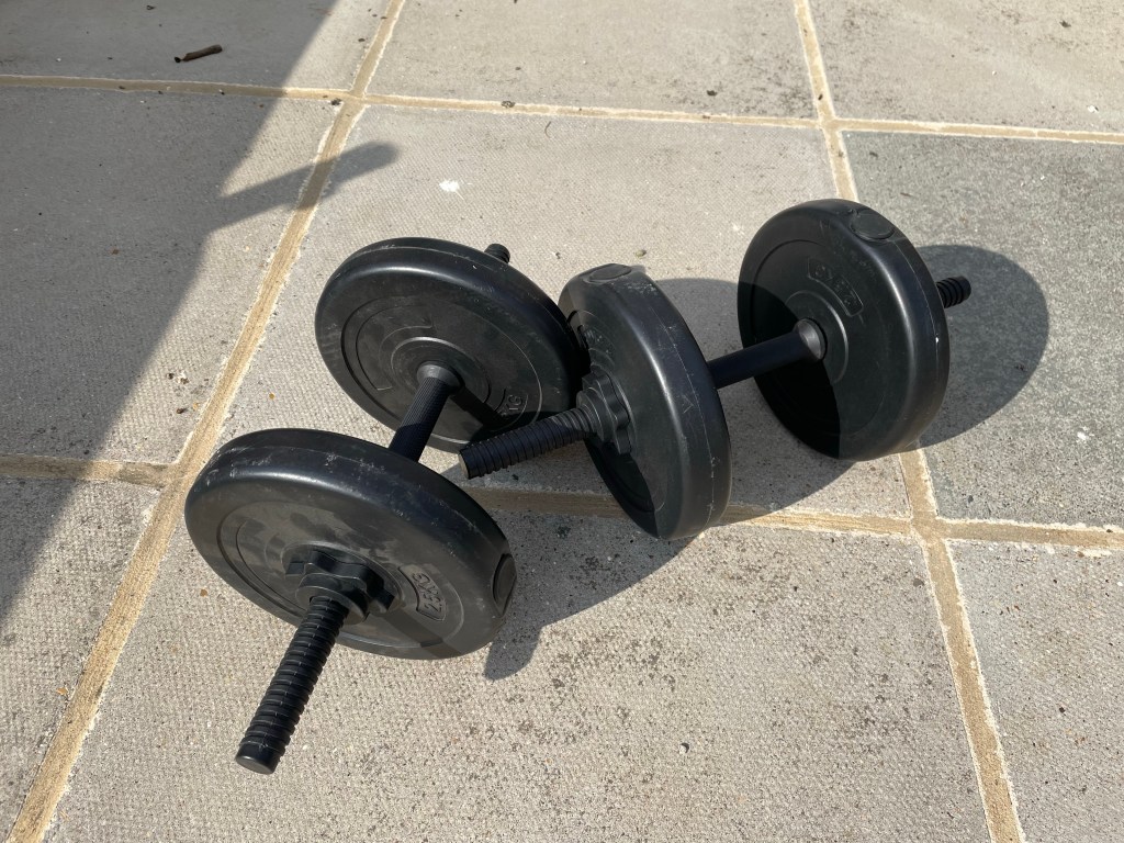 The sun was shining when I got in so decided on a weights session in the garden in the late afternoon sun.
