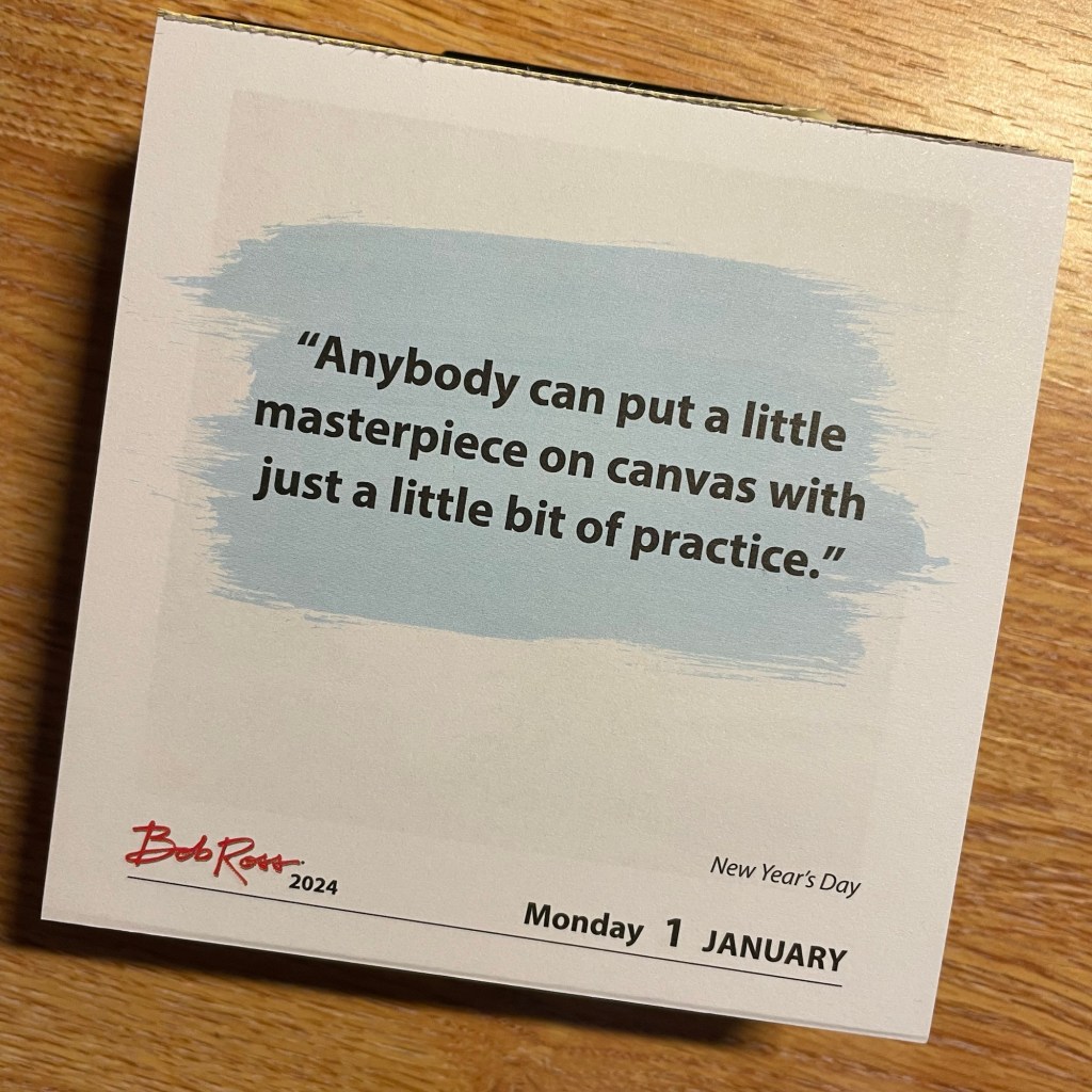Bob Ross’ thought of the day is not a thought, just a little drawing painting of me running through the snow: