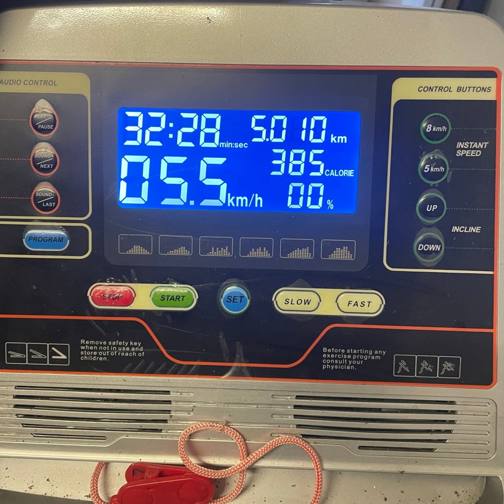 It was a horrible morning, grey and miserable. Got outside and braved the 15yds to the garage. Treadmill.