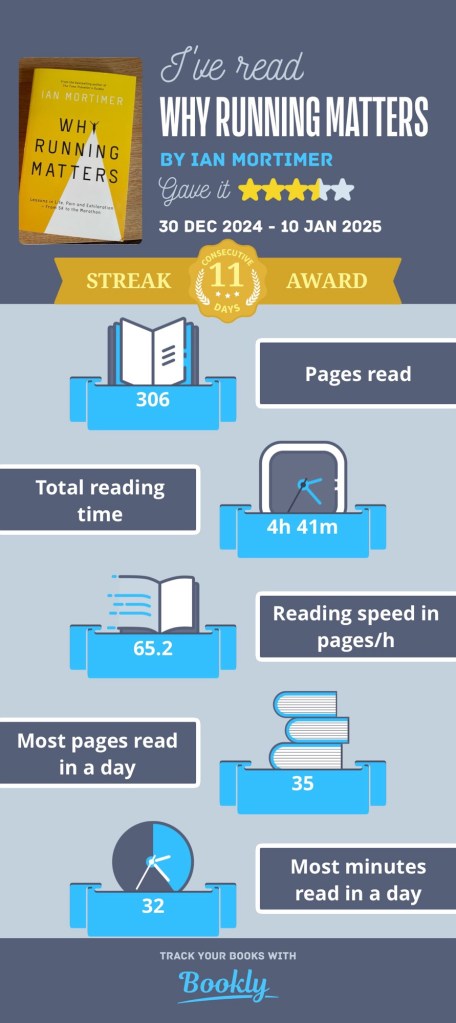 This book was ok. It follows a fella in his year of running. Quite a lot of, I did a parkrun with my son, I beat him, I beat him, he nearly beat me, he nearly beat me, I only just beat him….he beat me.