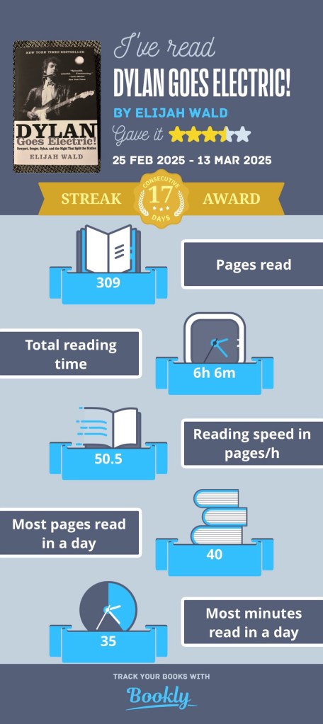 After watching the Dylan movie ‘A Complete Unknown’ – which was excellent – it was suggested I should read this book about the exact same thing: Dylan playing an electric set at Newport Folk Festival in 1965.