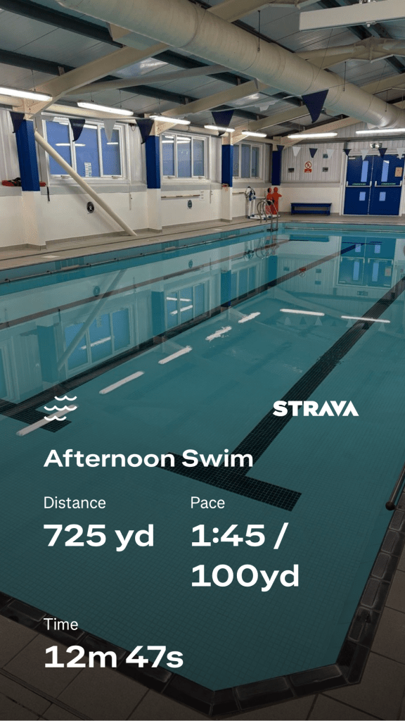 The weekly swimming session, Thursday instead of the normal Wednesday, but got it done.