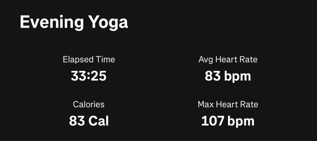 Kerry’s yoga happened at the opposite end of the day: 8pm.