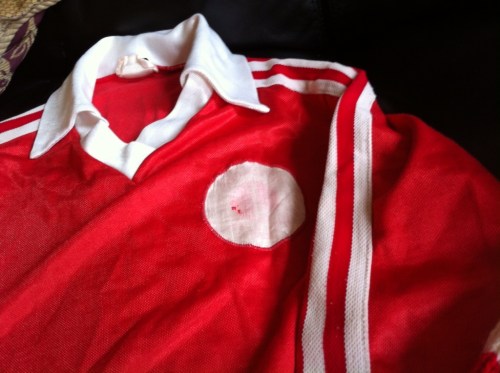 I think this may have been the first 'official' Charlton top I was given – although I'm not sure it was 'official' or even if such a thing as an 'official' kit existed. It may have just been purchased down the market, or from the club shop, but for me it didn't matter. It was Charlton. But as you can see I wore it out….