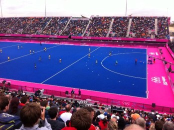 Despite the amount of people, we got into the Olympic Park, including various security checks, quickly and without fuss. A short stroll and we had reached the Riverside Arena, followed by a climb of 1000s of steps and we had reached row 29 of 30 and in position to enjoy the hockey.