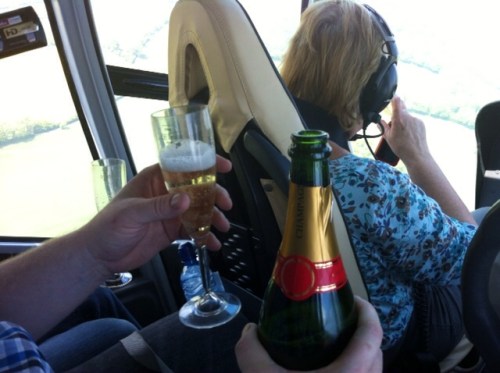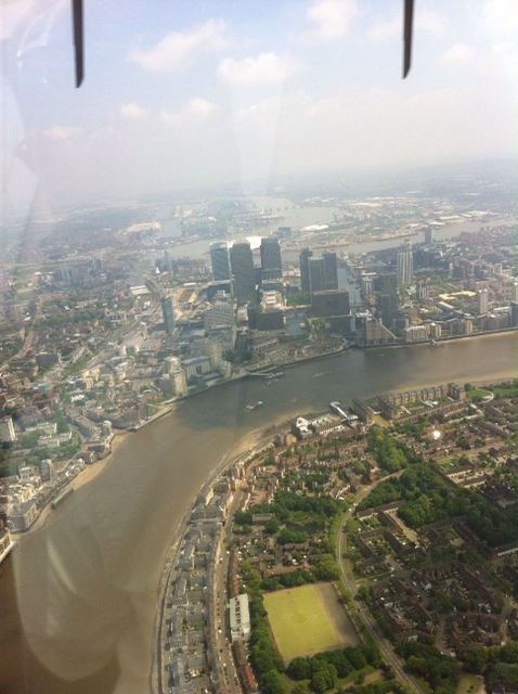 Once airborne the champagne was poured – it had been open prior to entering the helicopter as I'd imagine you don't really want a cork bouncing around in the cockpit. Travelling at 1200ft and 130mph we reached London in 9mins and were treated to some truly amazing sights. We followed the route of The Thames from Fulham and turned for home at Greenwich. Along the way we whizzed past various landmarks: Hampton Court, Wimbledon, Wembley, London Eye, Westminster, The Shard, The Gherkin, Canary Wharf and many many more.