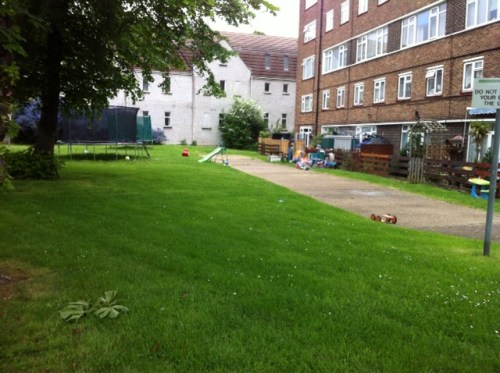 This I couldn't resist….taking advantage of the green space and extending your garden, there are so many plastic ride on thingys that it looked like a branch of Toys R Us, although not sure what they would do if the council insisted that the trampoline be stored in the garden…