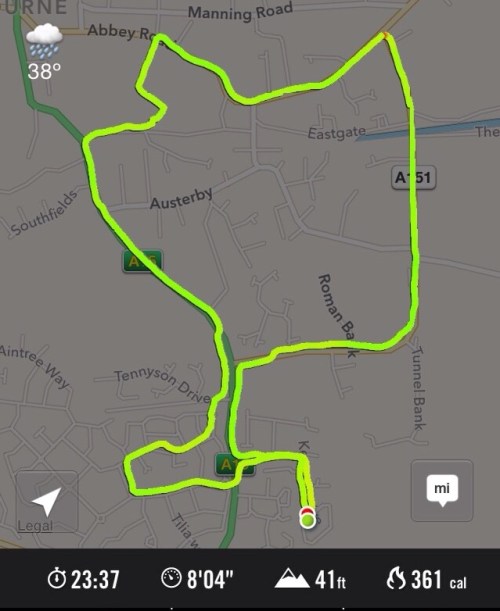 I woke up to a miserable morning in Lincolnshire. I had plans to attend a parkrun, but that never happened, due to the fact that I didn't actually wake-up until 9.30am. But with parkrun in mind I decided to get straight out and do a fast few miles. And that is exactly what I did; I hit the streets of Bourne.