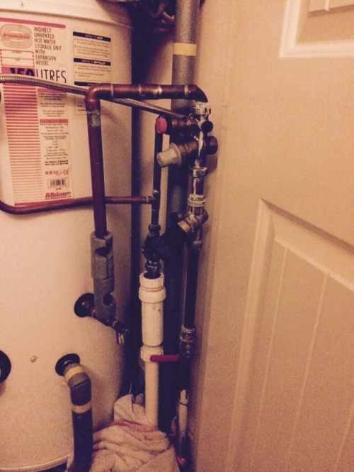 Today's photo is pipe work. Not just any old pipe work, but the sort that leaks, the sort that has leaked in the past, the sort that ends up taking over your life. Argh!!! The day has been punctuated with calls to various plumbers in an attempt to get it sorted. The lovely Shaun will be round on Monday to take a look.