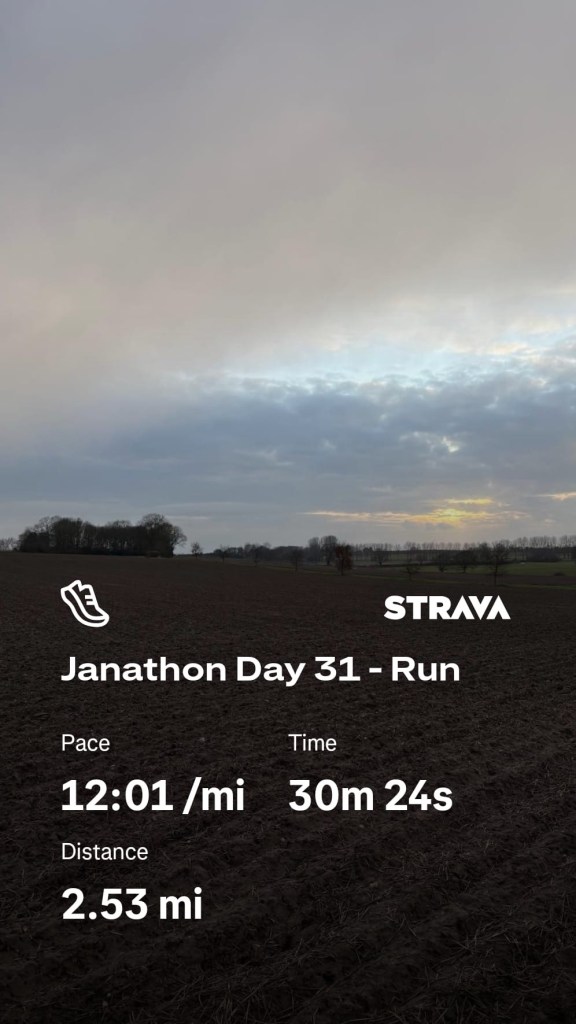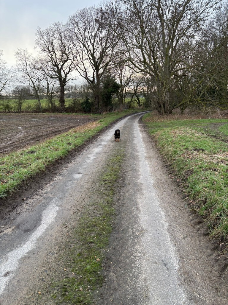 At the beginning the dog was reluctant to join in the Janathon fun. Had to pull him the first half mile and even when he was off the lead he wasn’t that motivated.