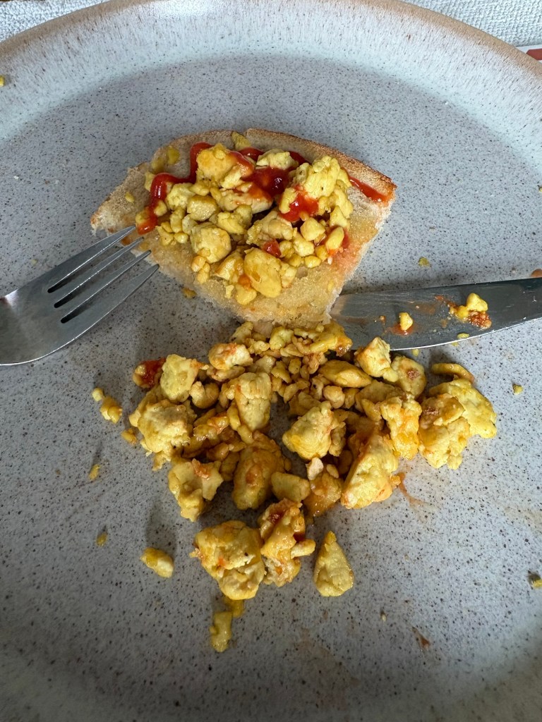 That is, until today. Today I experienced scrambled tofu. Only just remembered to take a picture.