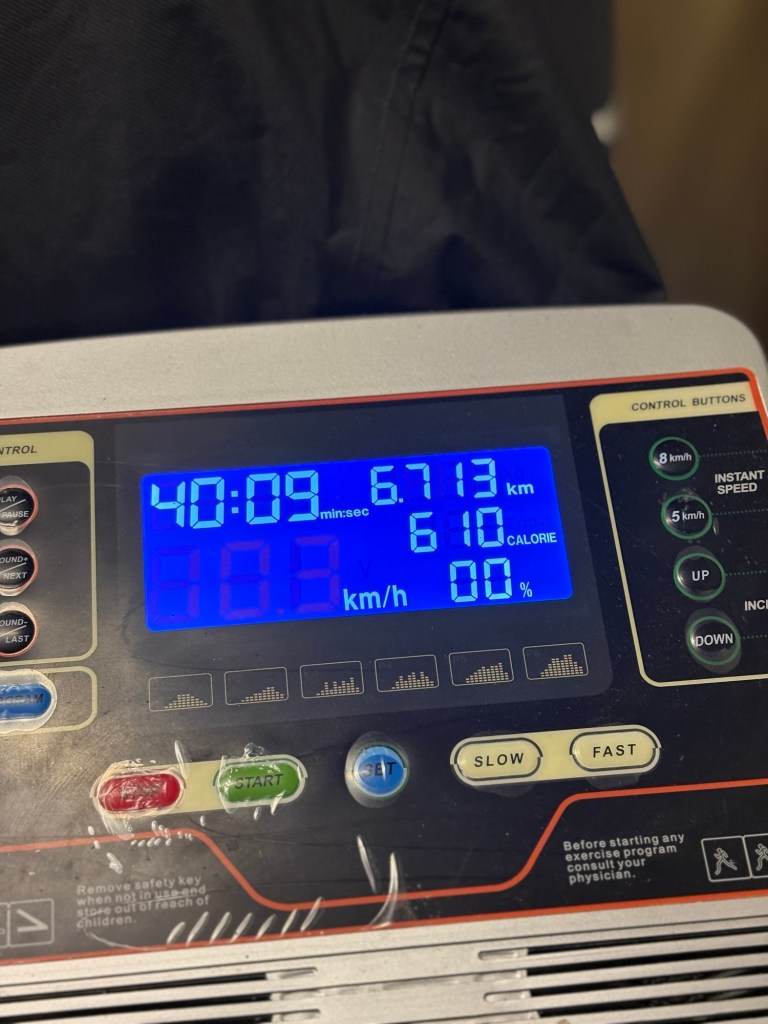 It was a full on day at school. I had a free but that was taken up with marking. So come the end of the day it was 40 min on the treadmill listening to Charlton Live podcast. Felt good.